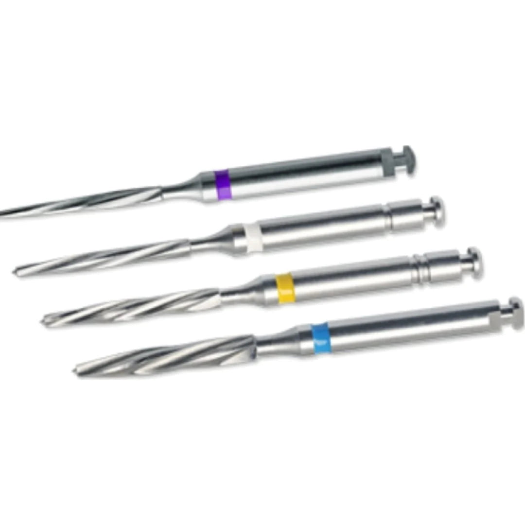 Standardized bur with inactive tip: Exacto burs exactly reproduce the diameter of the post and do not have an active tip, avoiding the risk of accidental perforations.