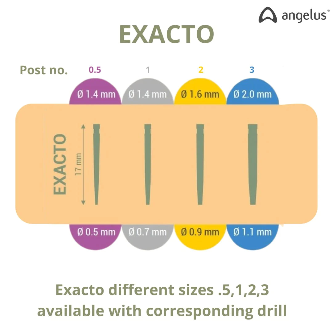 Special size: Exacto posts have a smaller size (17 mm), so they can fill the canal entirely with their taper, avoiding spaces that can lead to future displacement of the post.