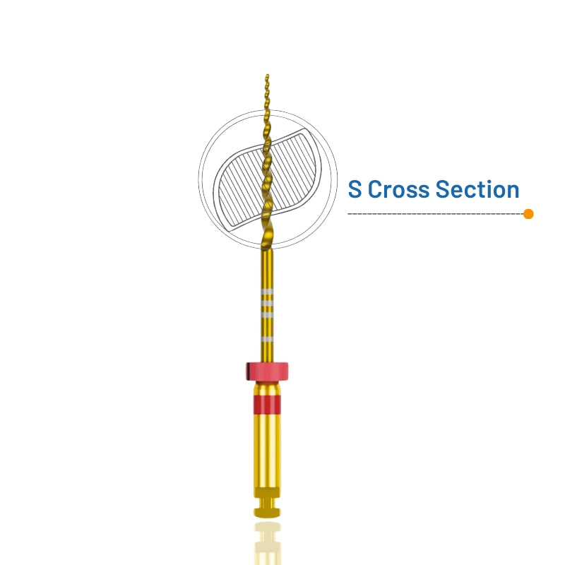 They are next-generation gold heat-treated NiTi rotary files featuring an S-shaped cross-section that combines strength, flexibility, and efficient debris removal for safe canal preparation