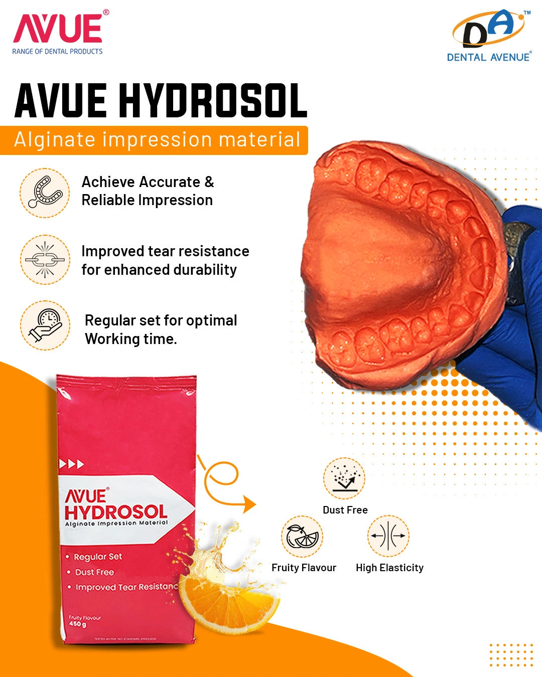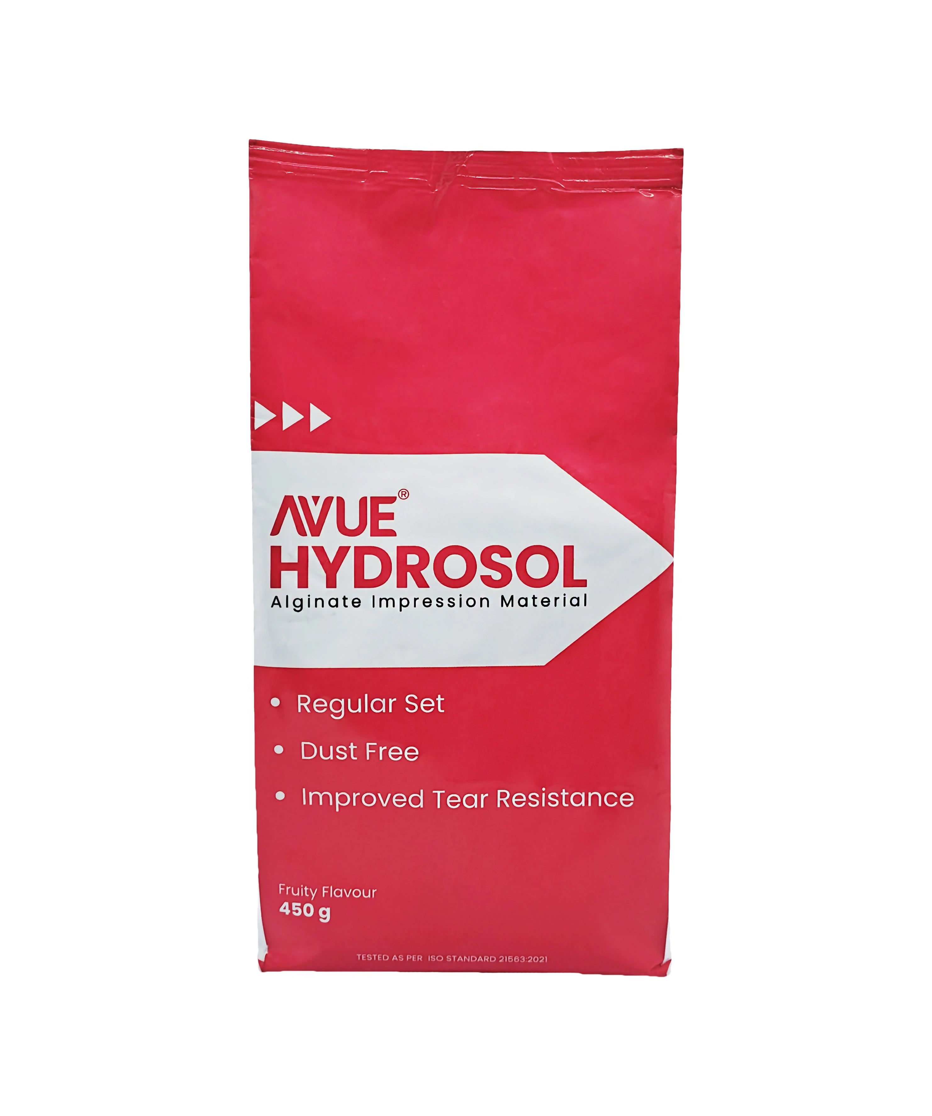 Hydrosol alginate is a regular set, dust-free hydrocolloid with improved tear strength designed to offer unparalleled accuracy around the margins of the tooth preparation, enhancing comfort and efficiency for dental professionals.