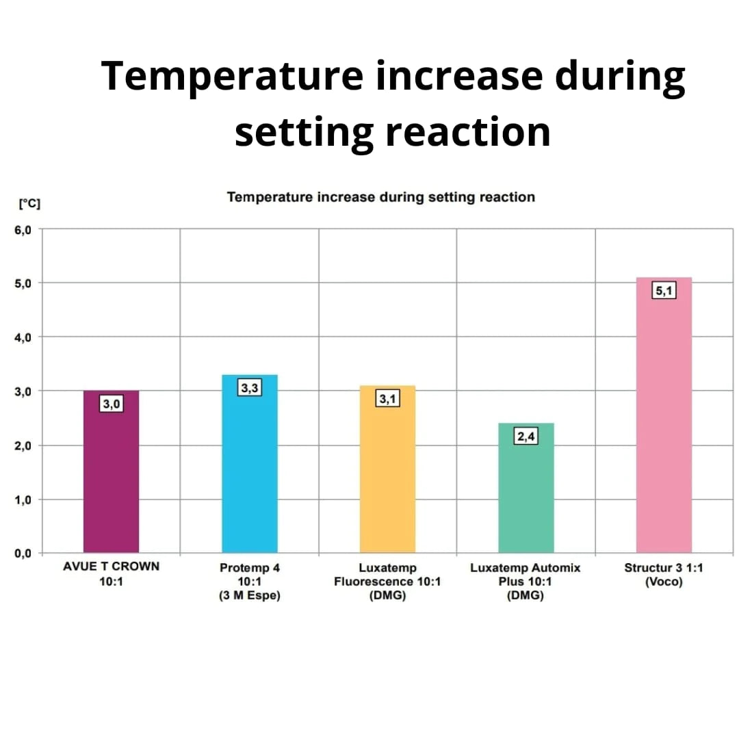 AVUE T CROWN has well balanced mechanical properties, which are comparable or better than the leading competitors in the market. This assures a very good clinical performance.
