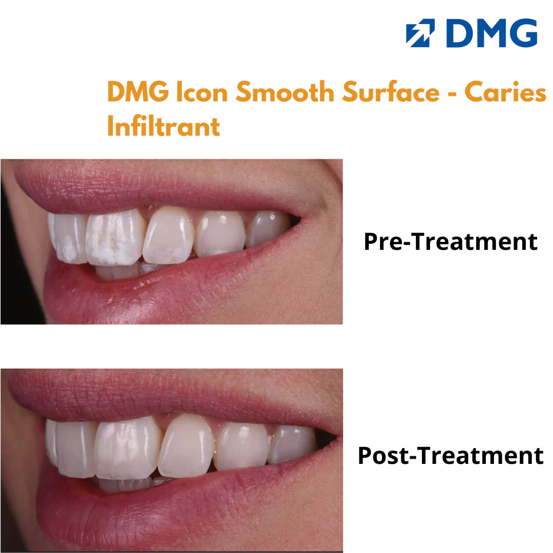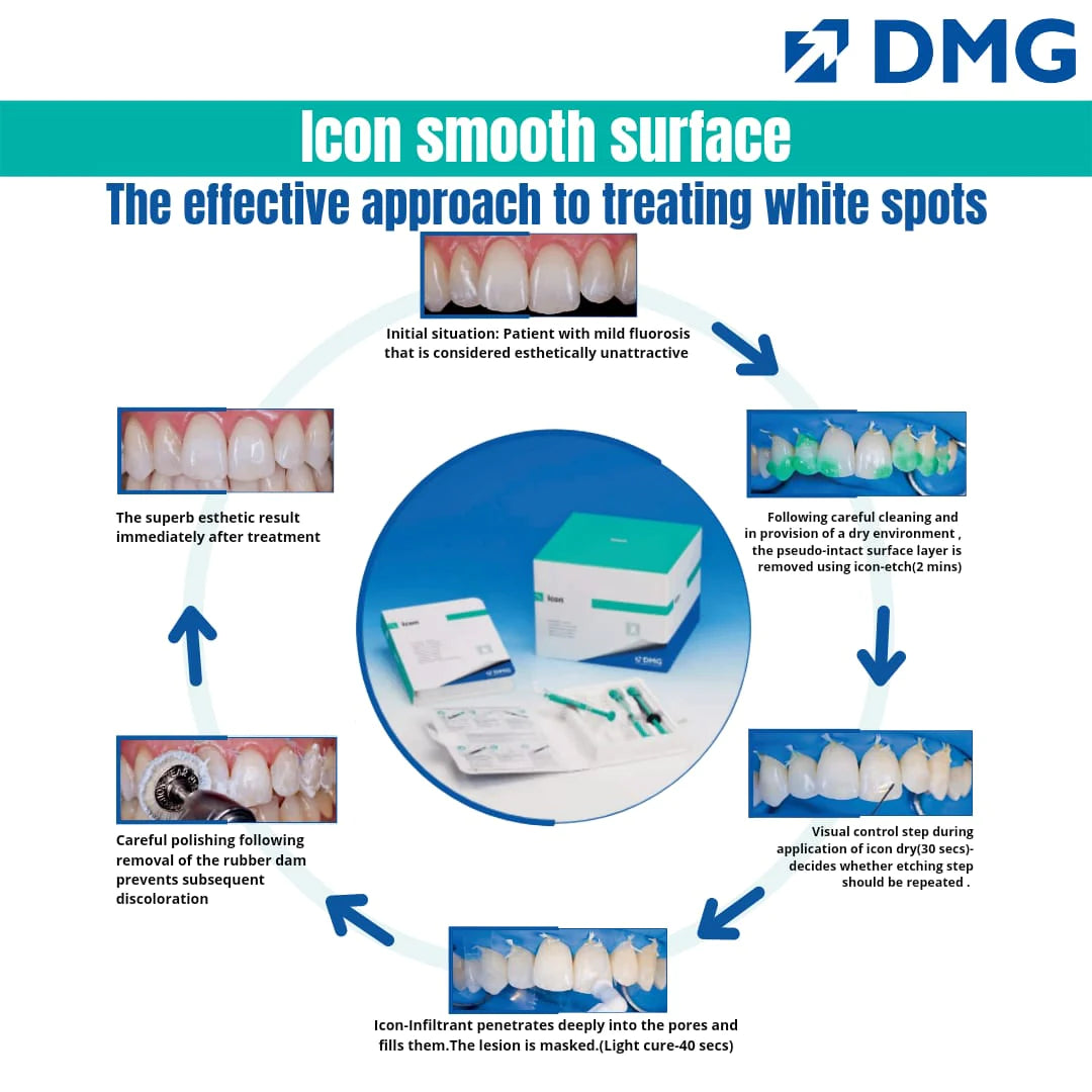 Icon smooth surface is an innovative product for the micro-invasive treatment of lesions. It was especially developed for smooth surface infiltration and is particularly suitable for the treatment and masking of white spots.