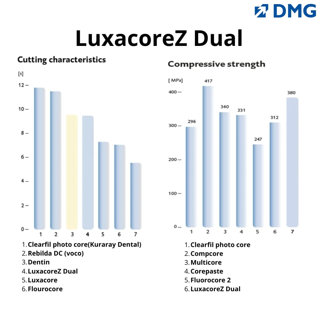 LuxaCore Z is DMG’s premium composite for core build-ups and post cementation. LuxaCore Z provides dentine-like cuttability, which ensures controlled substance removal and a precise preparation margin. LuxaCore Z gives you optimal guidance control of the bur.