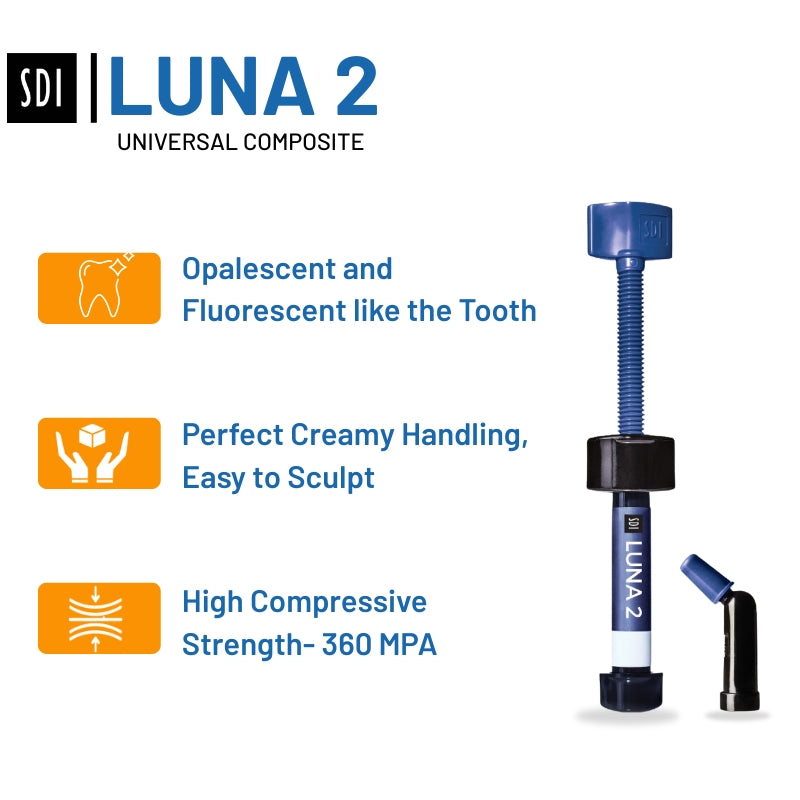 Luna 2 has perfect creamy handling, highly aesthetic, has natural tooth-like properties across all light with superior compressive strength (360Mpa)