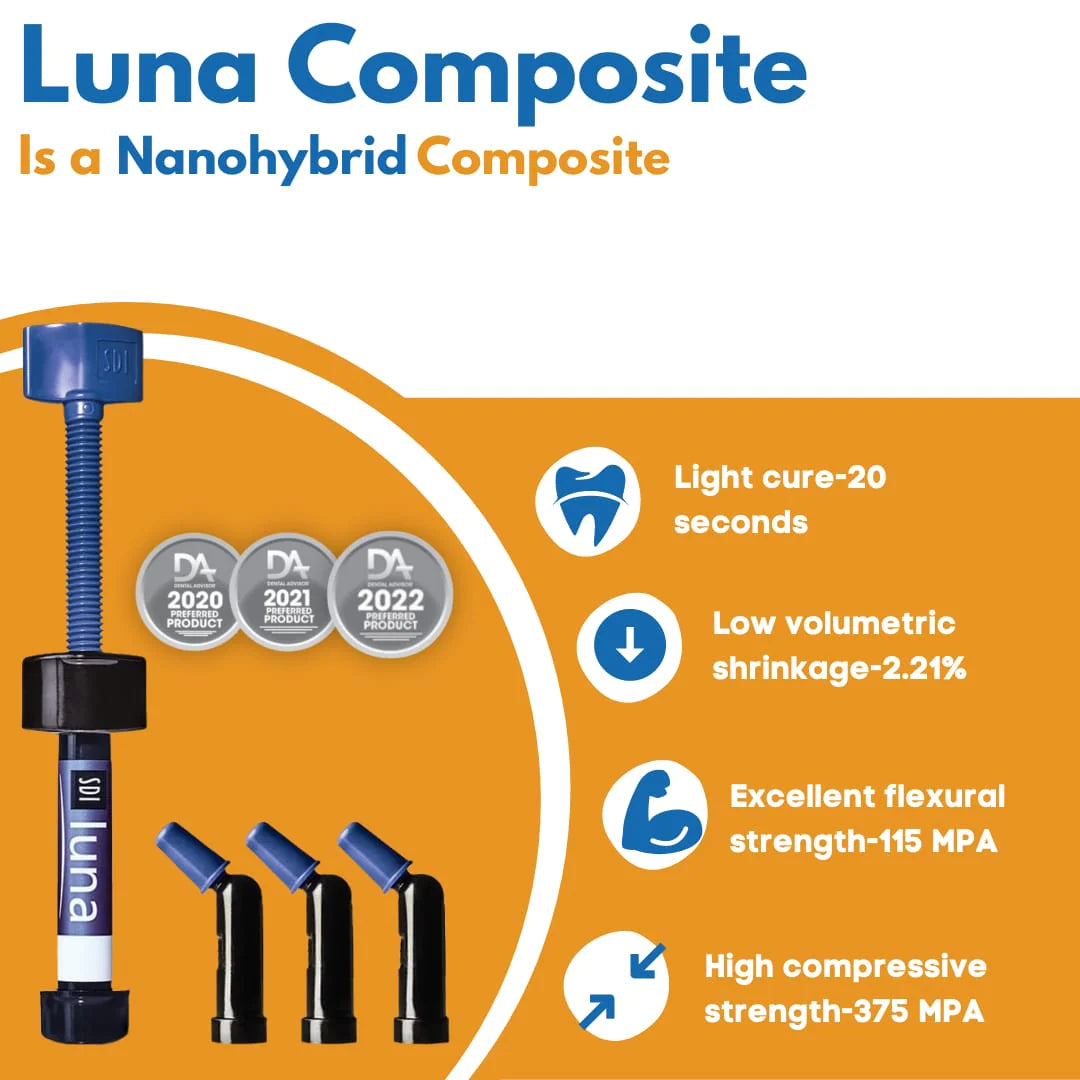 Luna nano hybrid composite - Anterior/Posterior Nanohybrid composite with superior strength & aesthetics.