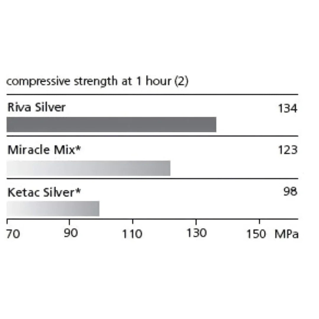 Riva Silver’s high compressive strength minimises the risk of fracture in the critical early stages after the restoration has been placed.