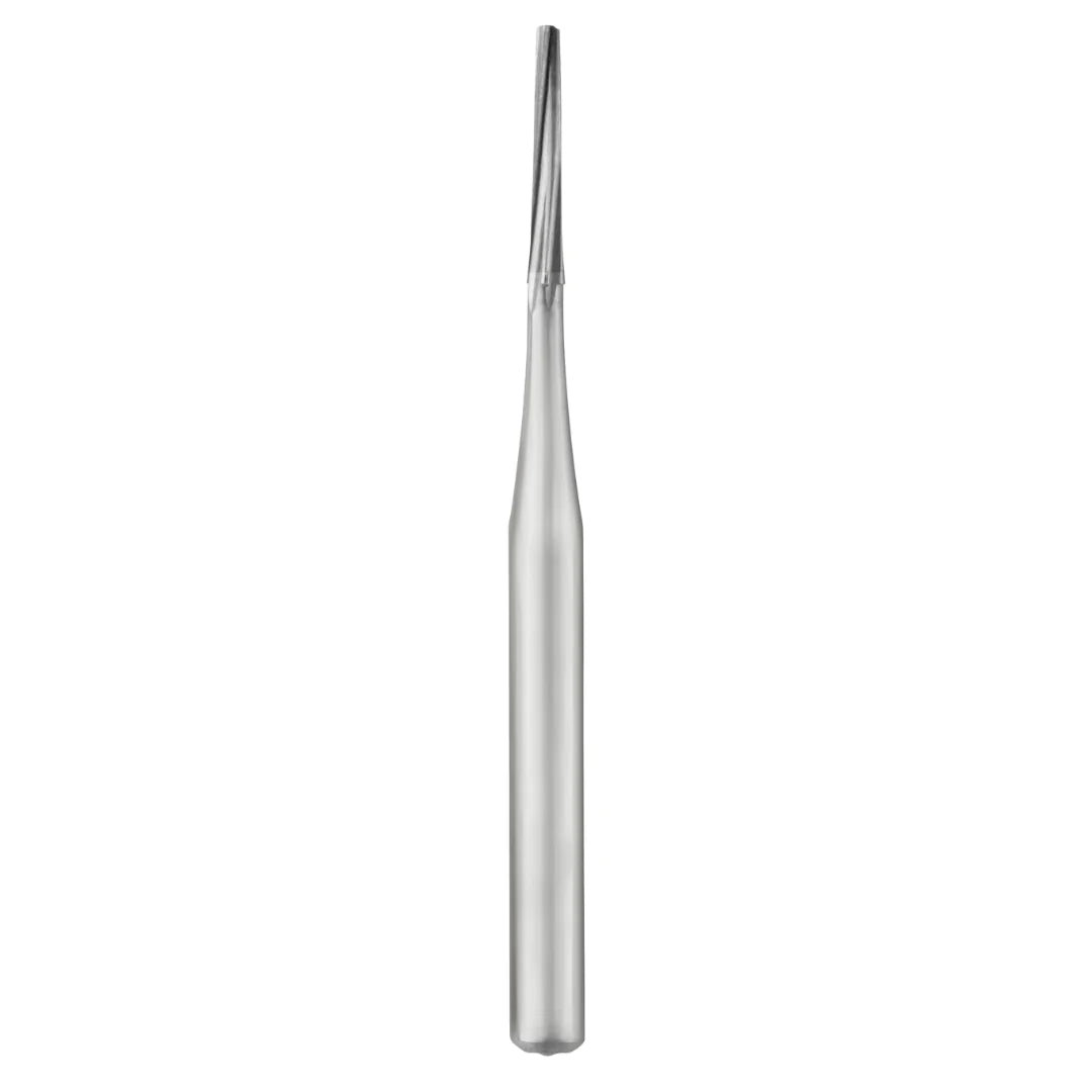 SS White® solid carbide burs are made with high quality fine-grain tungsten carbide, which produces a blade that is sharper and wears longer compared to less expensive coarse grain tungsten carbide. Blades made of fine grain tungsten carbide, retain shape even as they wear. Less expensive, large particle tungsten carbide dulls quickly as the large particles break from the blade or cutting edge