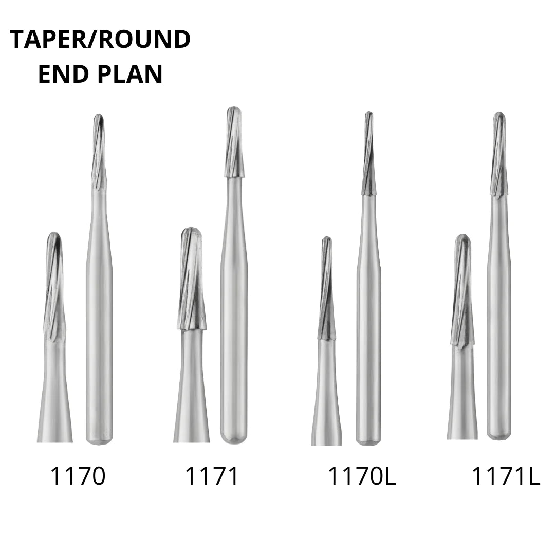 A. These burs are made up of high-end tungsten carbide, known for their durability and cutting experience.